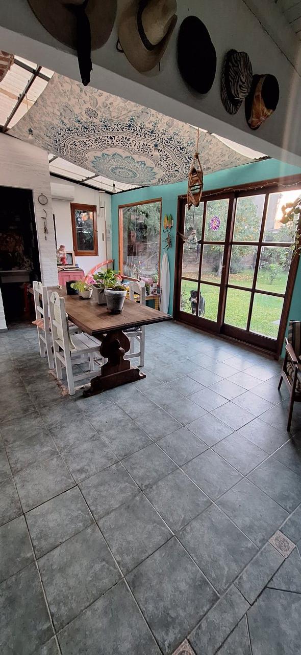 garaje pasante con una muy linda galería integrada. Además cuenta con parque, pileta con equipo completo Y quincho con baño!